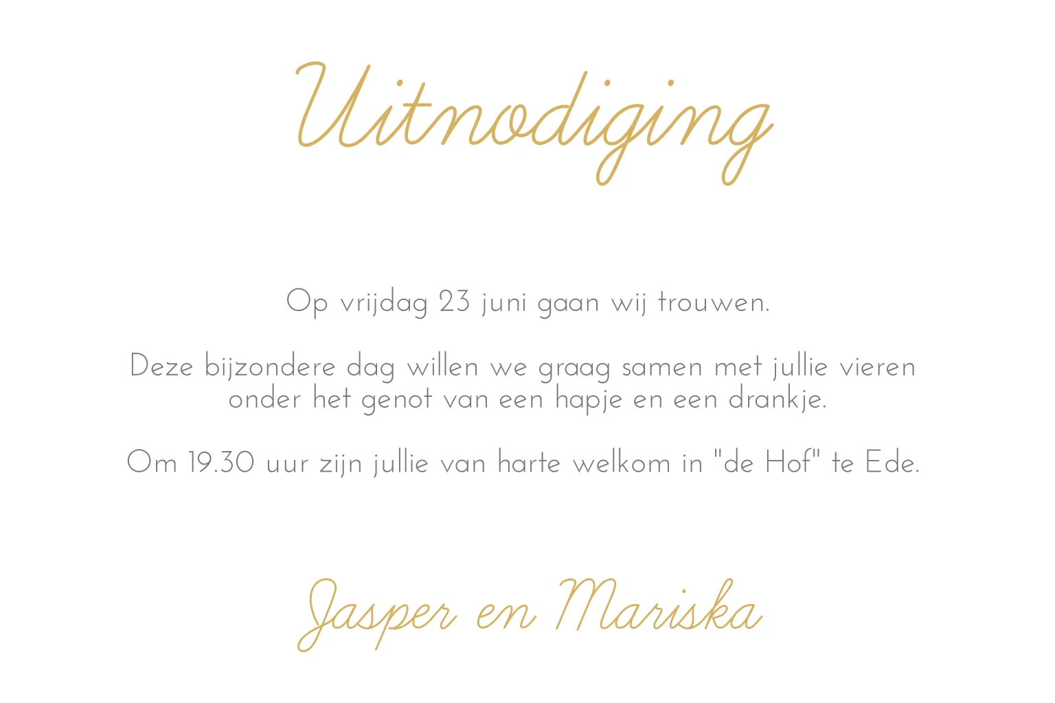 Hippe trouwkaart met goud foliedruk en tekst. (20578)