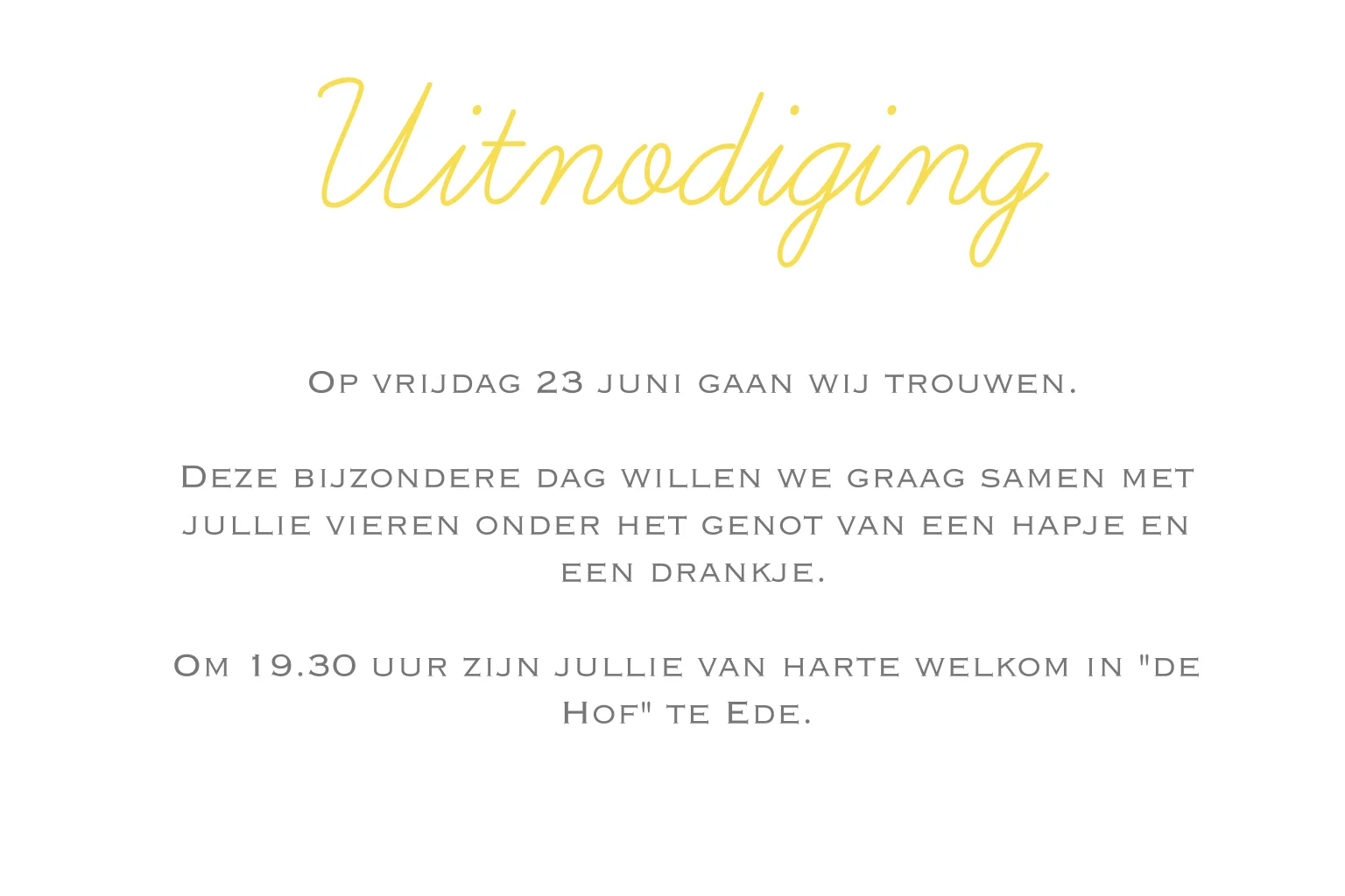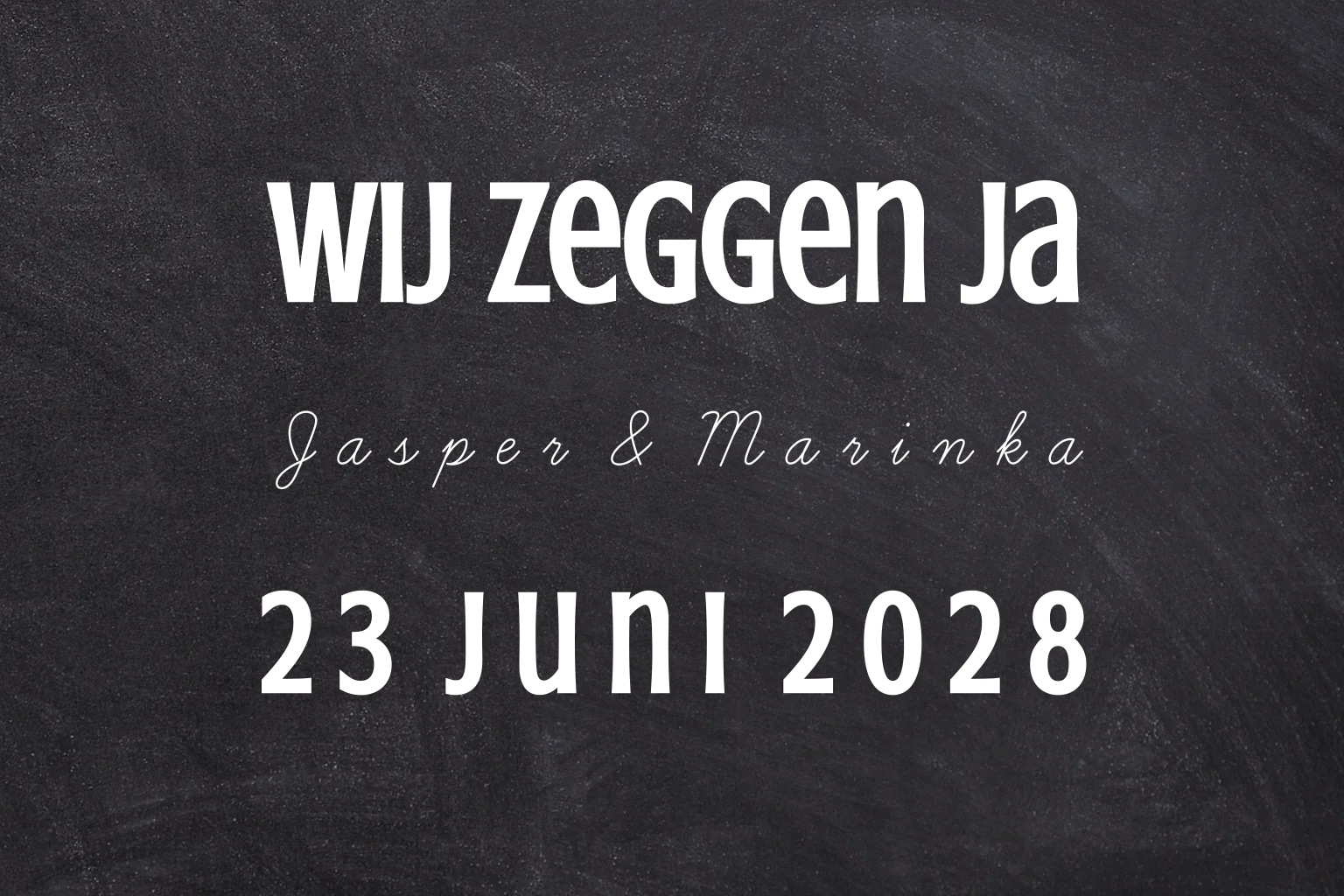 Trouwkaart met krijtbord en goud foliedruk en tekst