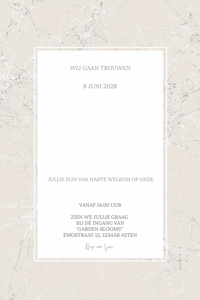 Trouw Uitnodiging voor een bruiloft met zilverfolie met mooie achtergrond marmer patroon. (21501)