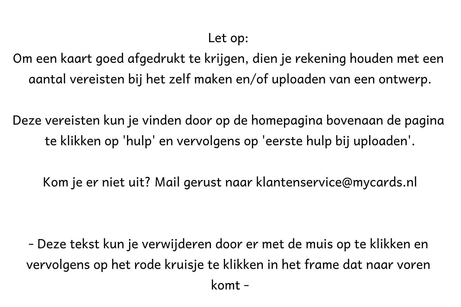 Zelf je eigen dubbele liggende trouwkaart ontwerpen? Start met dit lege ontwerp in onze tool of upload hier je eigen ontwerp.