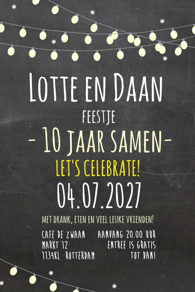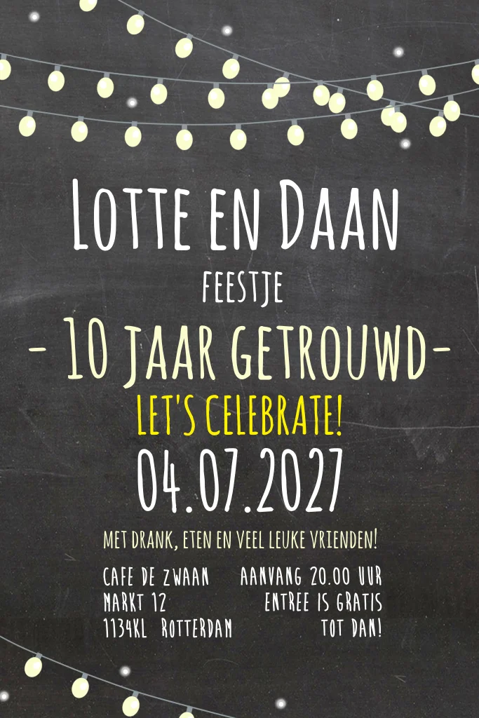 Uitnodiging feestje 10 jaar getrouwd met partylights