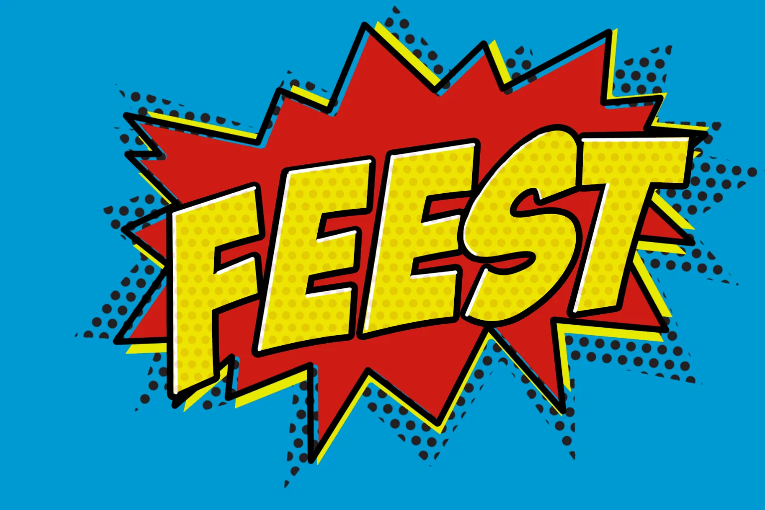 Stoere blauwe feest uitnodiging rood en geel