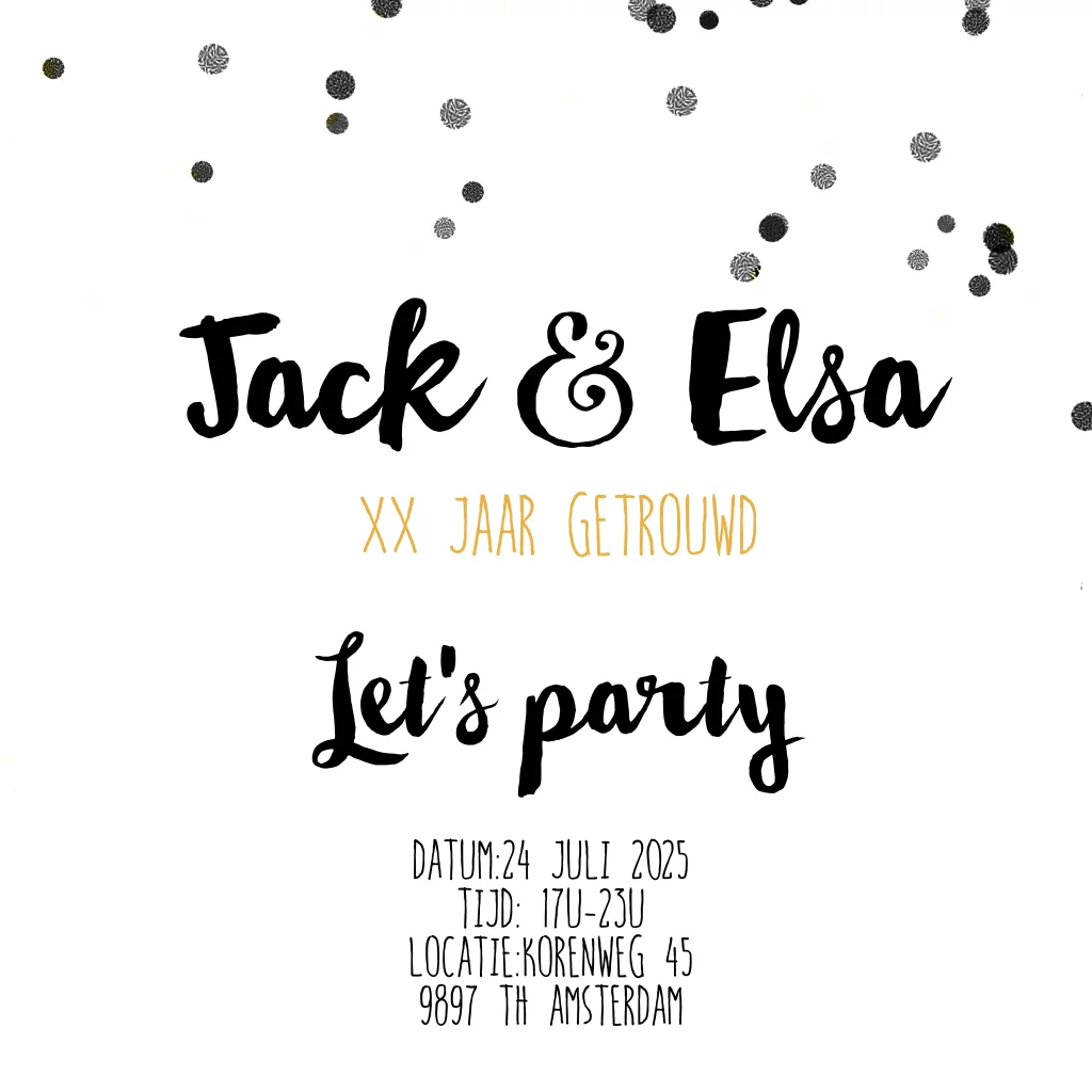 Originele en feestelijke uitnodiging voor een gezellig 12,5 jarig jubileum feestje! Hip en trendy kaartje met confetti print, rode folie hart ballon en leuke illustratie van ringen. (6886)