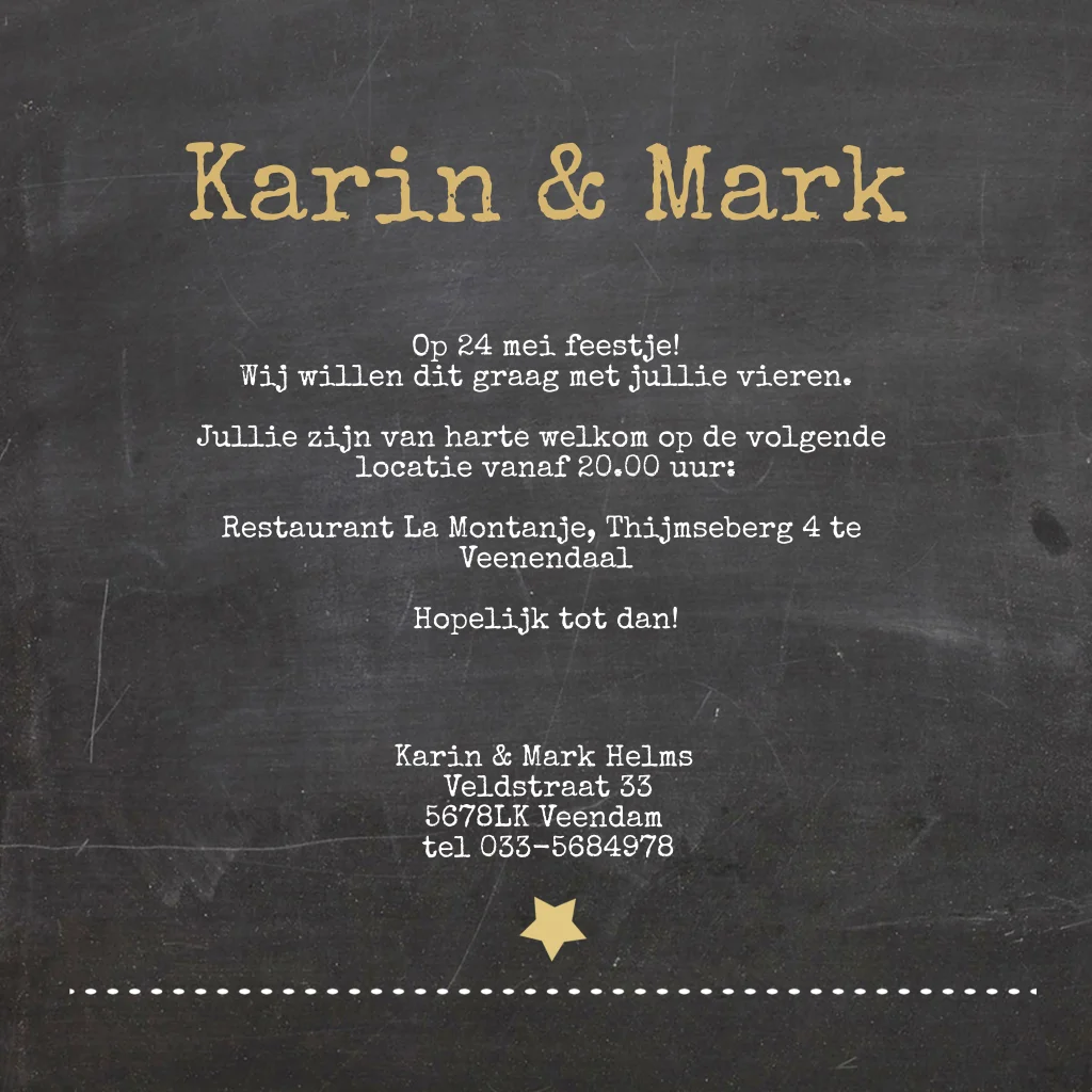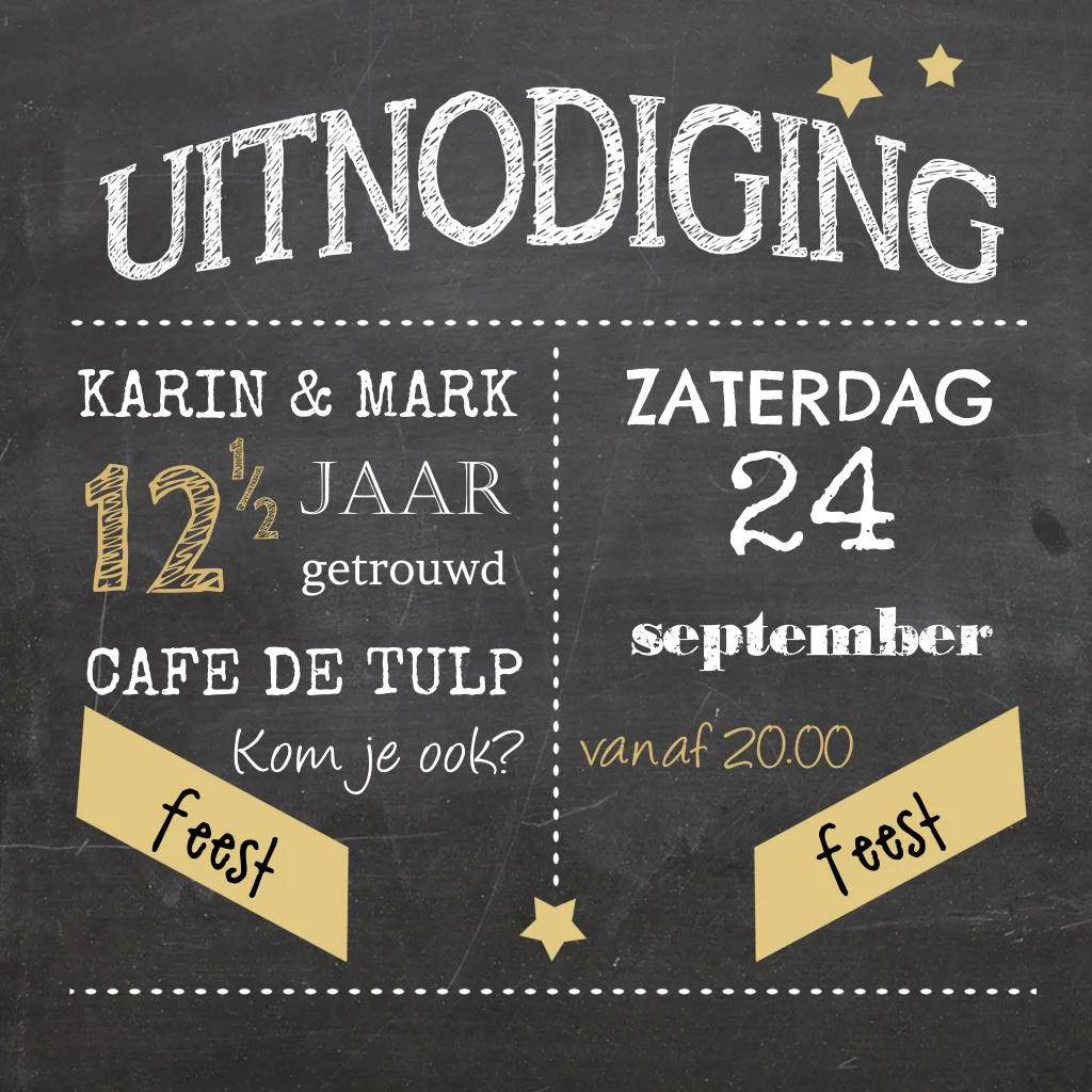 Leuke krijtbord uitnodiging 12,5 jarig jubileum