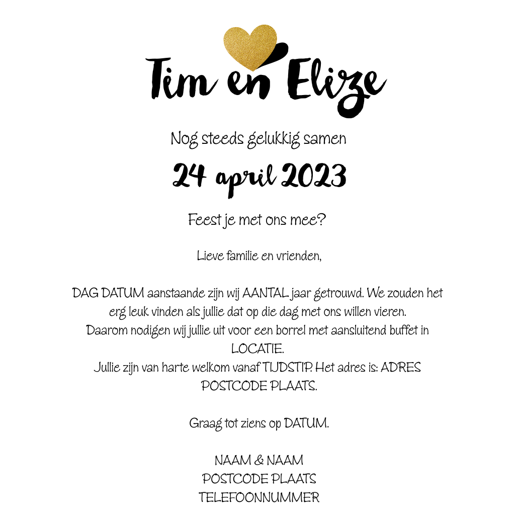 Hippe uitnodigingskaart krijt hart met goud 12,5 jaar getrouwd