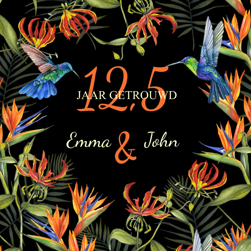 Huwelijksjubileum 12,5 jaar getrouwd uitnodiging in tropische sfeer met hummingbirds. (21080)