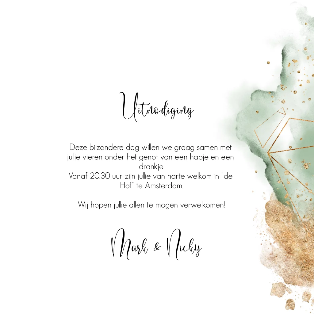 Uitnodiging voor een jubileum-feestje 12,5 jaar getrouwd met pastel groen en geometrische vorm. (8149)
