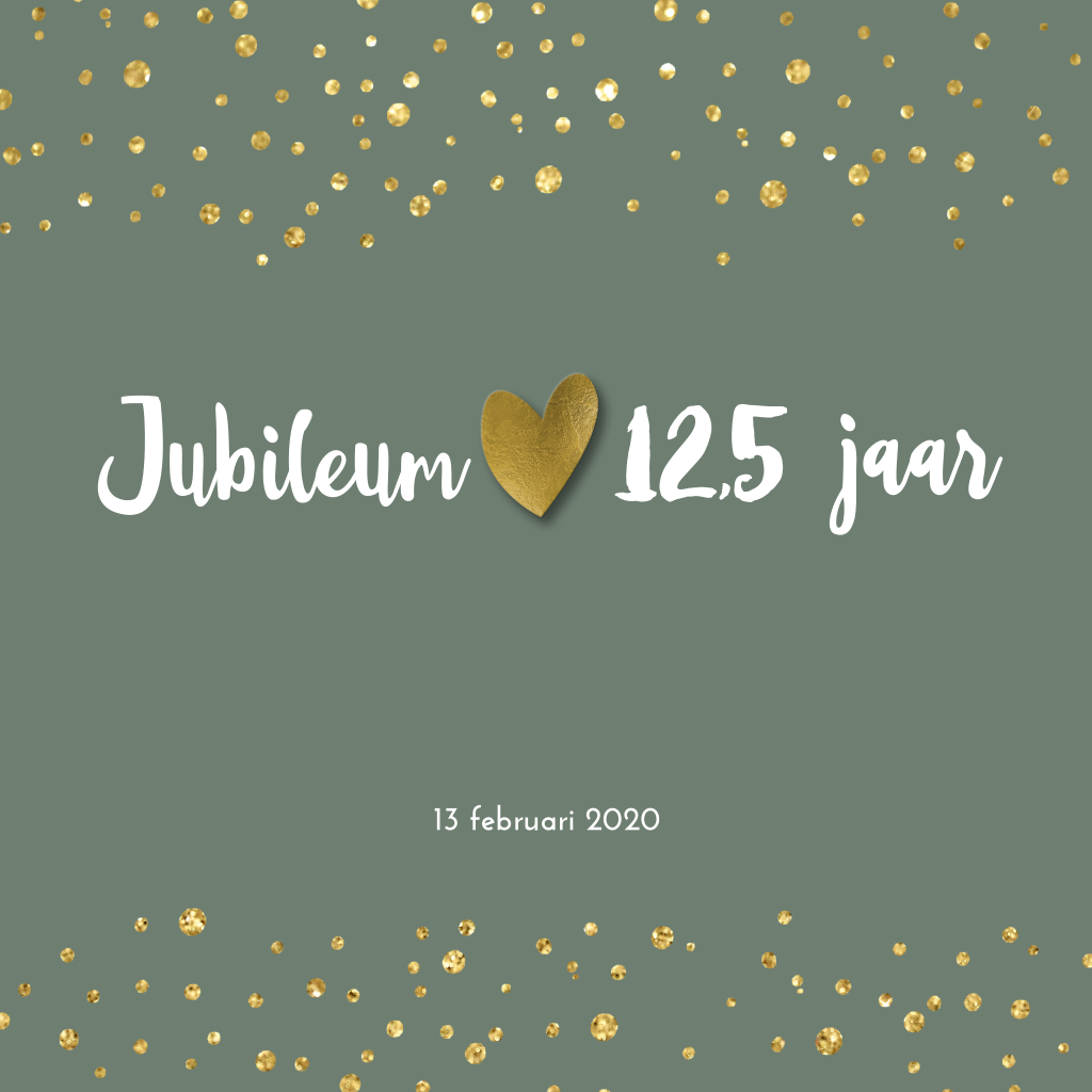 Jubileum 12,5 uitnodiging met spetters en gouden hart