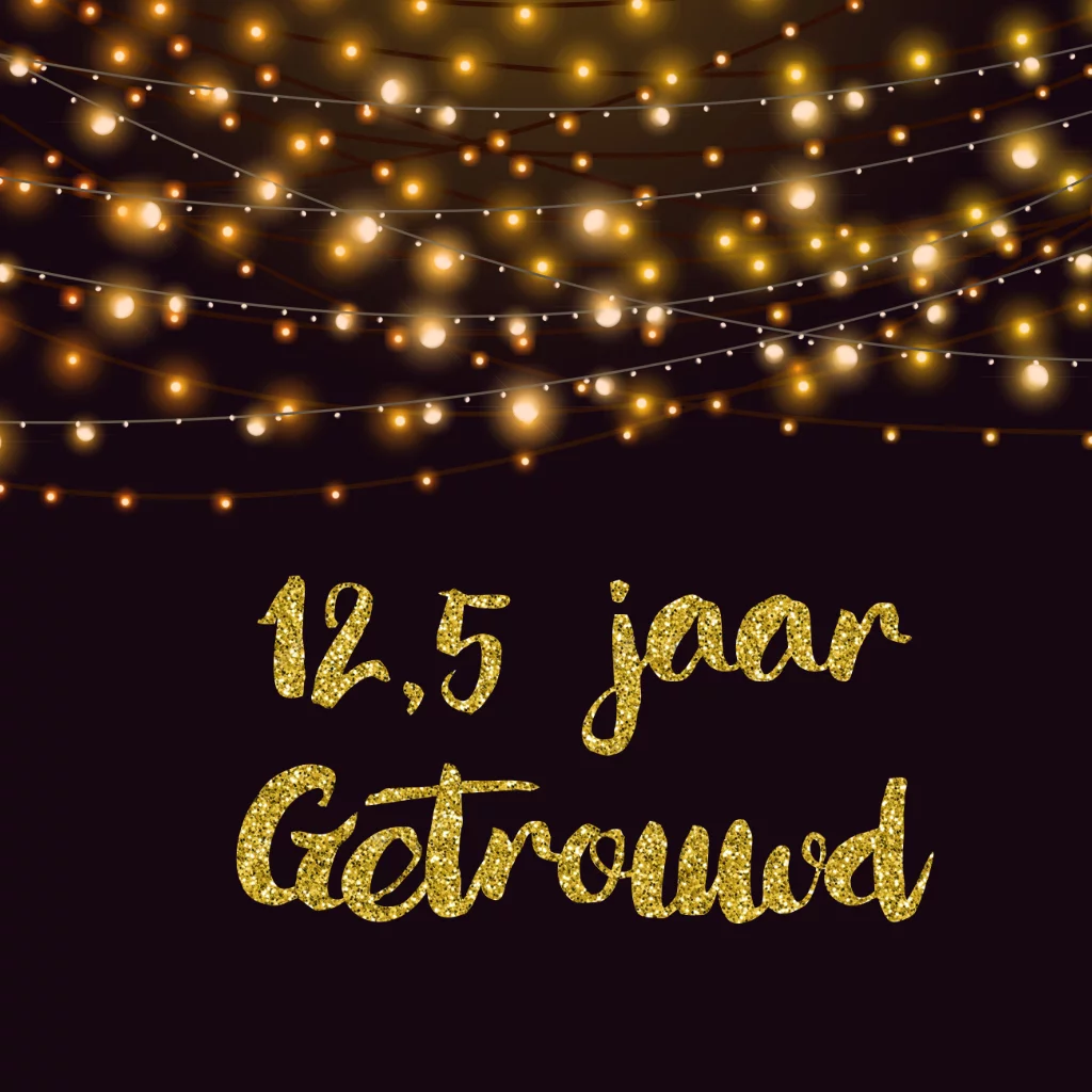 Jubileumkaart Uitnodiging 12,5 jaar getrouwd met lichtslingers en goudkleurige glitters. Een feestelijke kaart om jullie jubileum mee aan te kondigen. (6554)