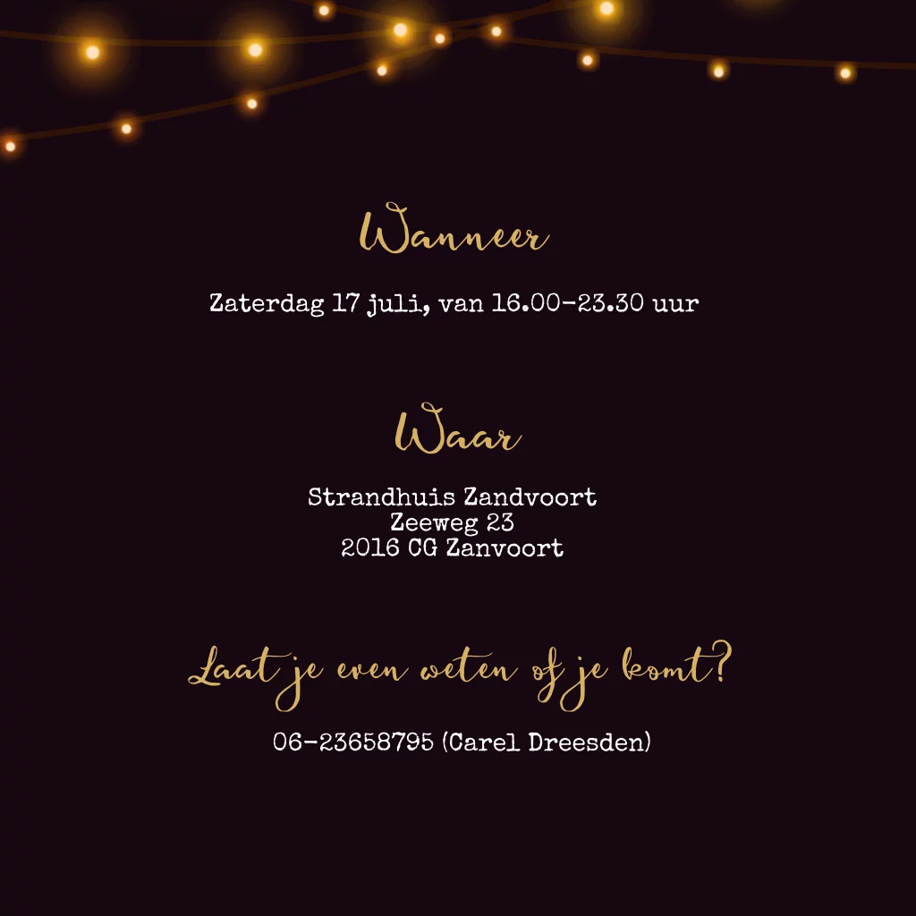 Uitnodiging 12,5 jaar getrouwd met lichtslingers en gouden glitters