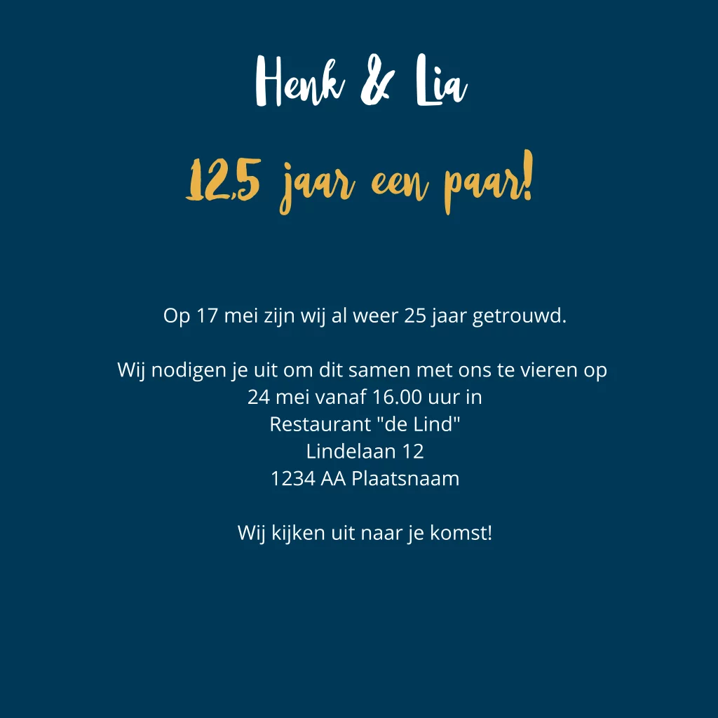 Moderne uitnodiging 12,5 jaar getrouwd blauw