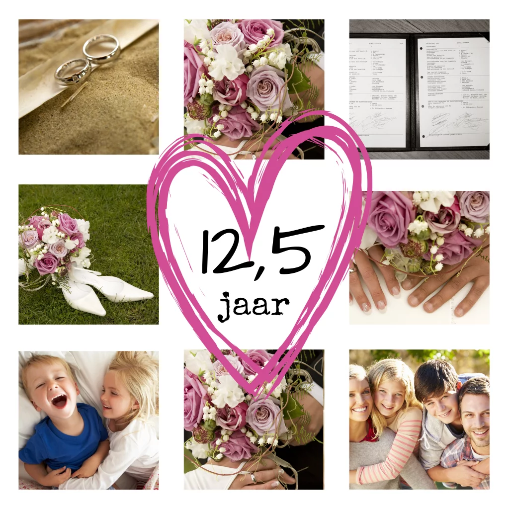 Hippe jubileum kaart fotocollage 12,5 jaar getrouwd. Mail ons gerust voor hulp bij het plaatsen van de foto's! (2022)