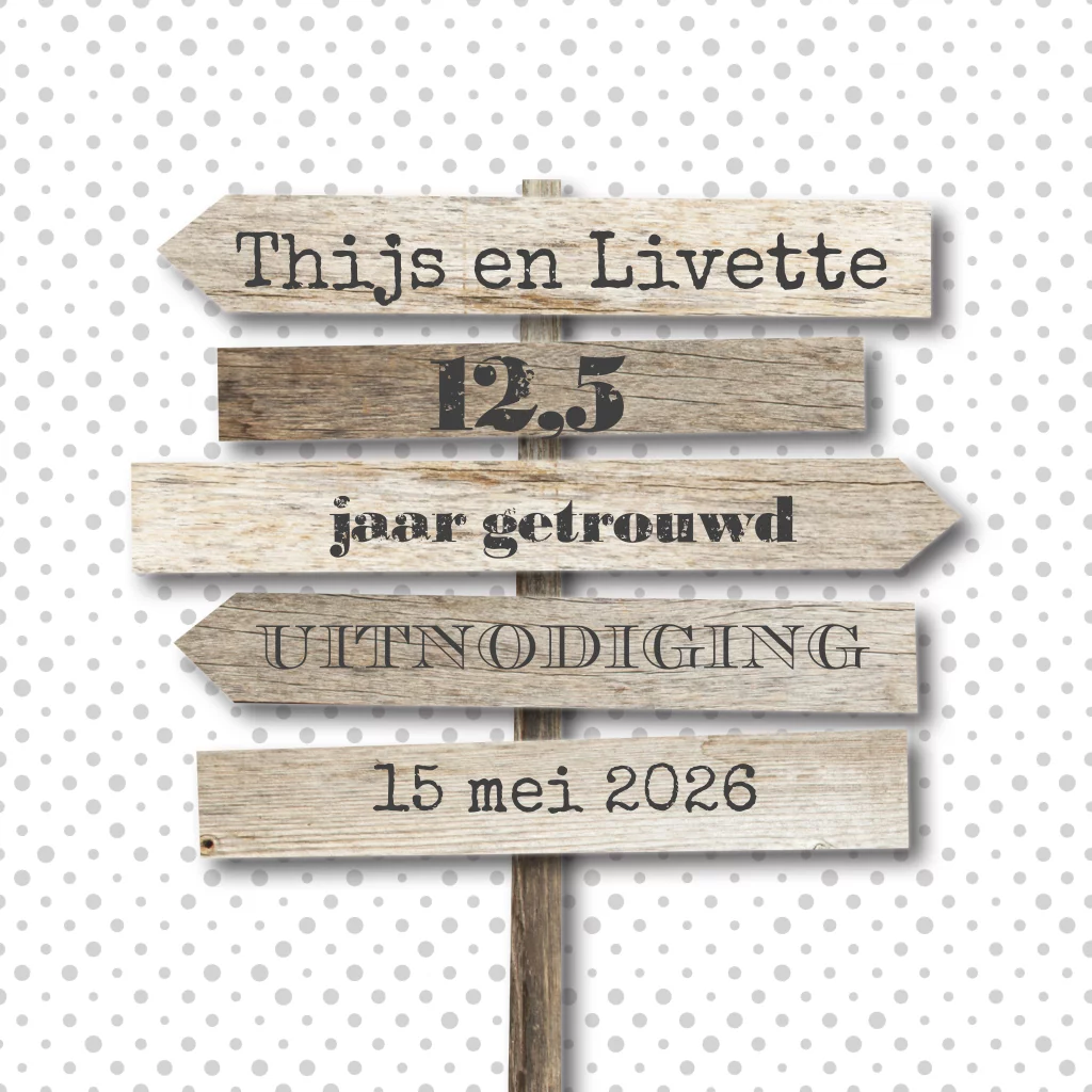 Jubileum uitnodiging 12,5 jaar getrouwd met stippen en wegwijsborden. (2637)