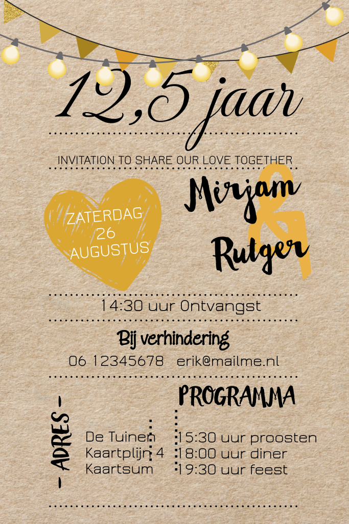 Uitnodiging 12,5 jarig jubileum feest met licht snoer