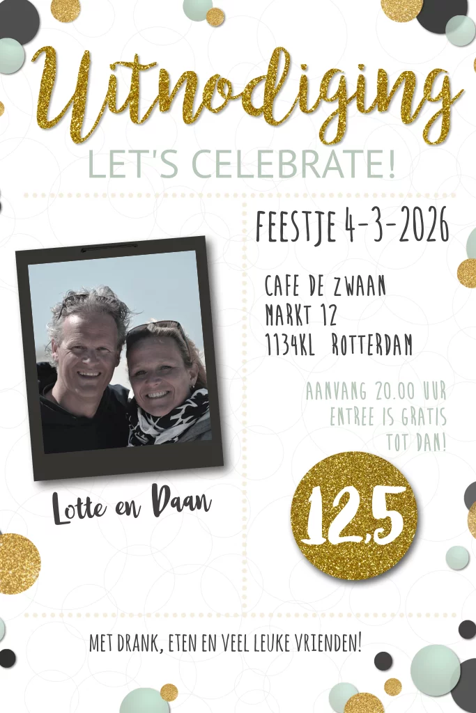 Uitnodiging feestje 12,5 jaar getrouwd met confetti wit enkel