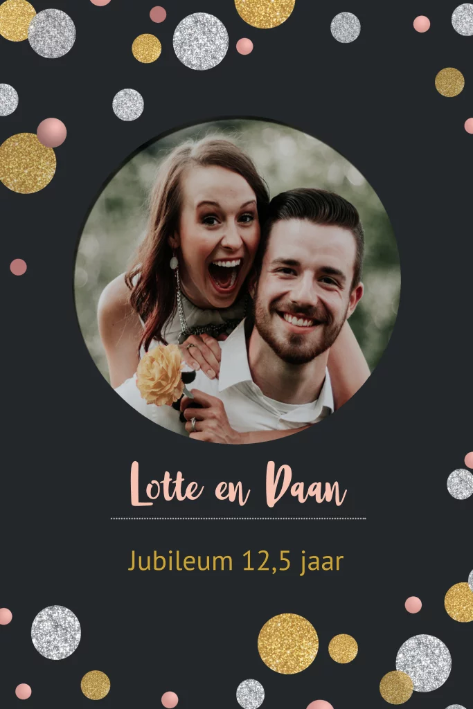 Uitnodiging 12,5 jaar getrouwd met confetti zwart enkel