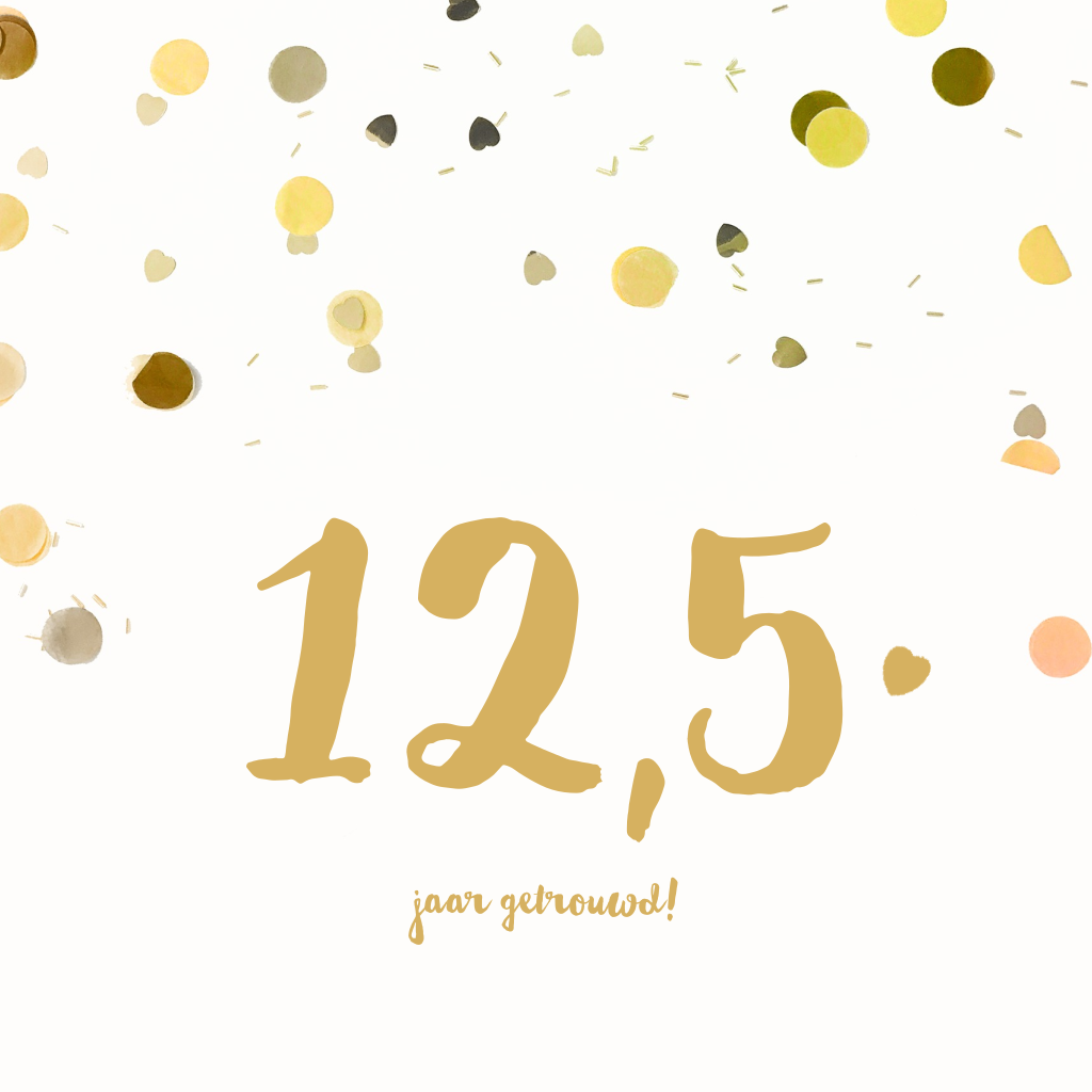 Jubileum kaart 12,5 jaar goud confetti