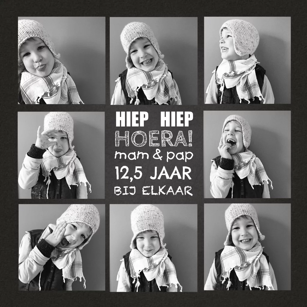 Te gekke hippe uitnodiging voor bijvoorbeeld een 12,5 jarig jubileum feest of een verjaardag. Origineel en trendy kaartje met fotocollage van bijvoorbeeld jullie kind of jullie samen. Tof in zwart-wit krijtbord look! (6709)