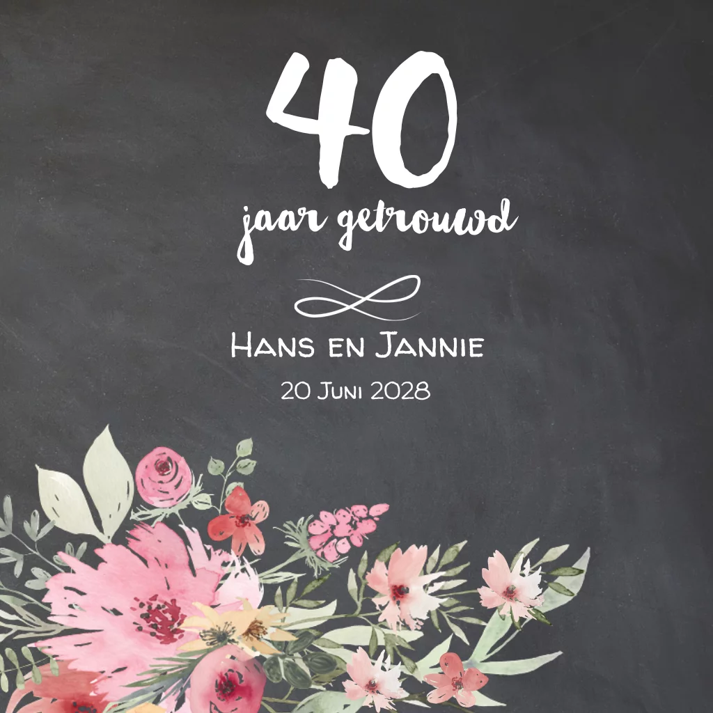 40 jaar getrouwd uitnodiging krijtbord met aquarel bloemen
