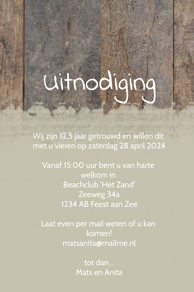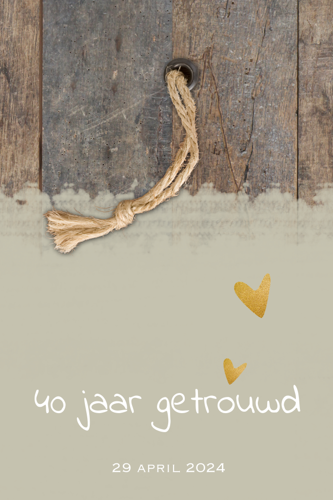 40 jaar getrouwd uitnodiging met taupe waterverf op steigerhout
