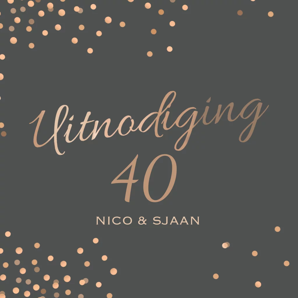 40 jaar getrouwd uitnodiging jubileum kaart koper tinten confetti. (3801)