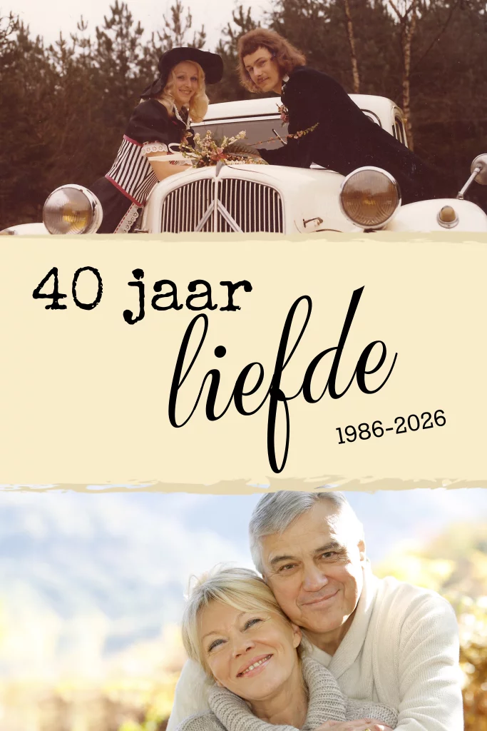 Fotokaart uitnodiging 40 jaar getrouwd met foto van nu en vroeger