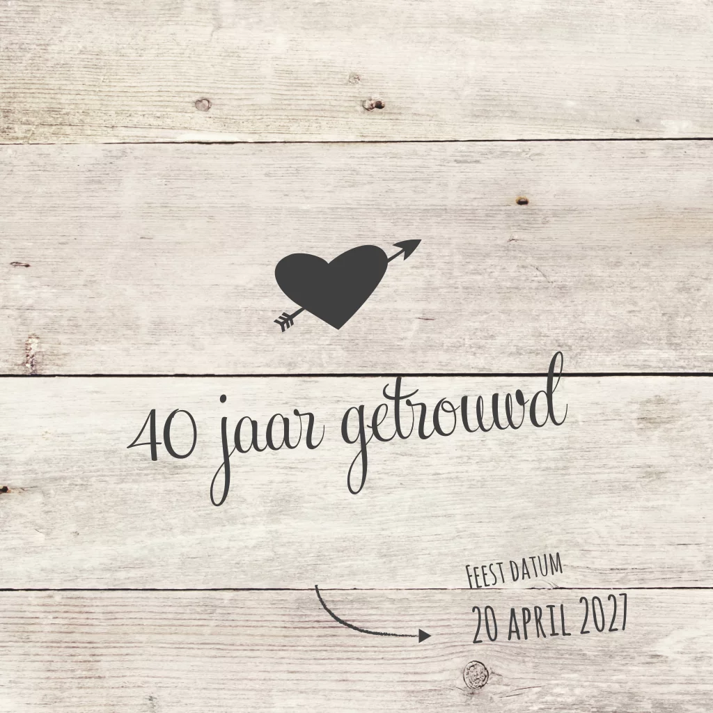 Uitnodiging 40 jaar getrouwd voor een jubileum feestje. Grijze houten planken en hartje. (2079)