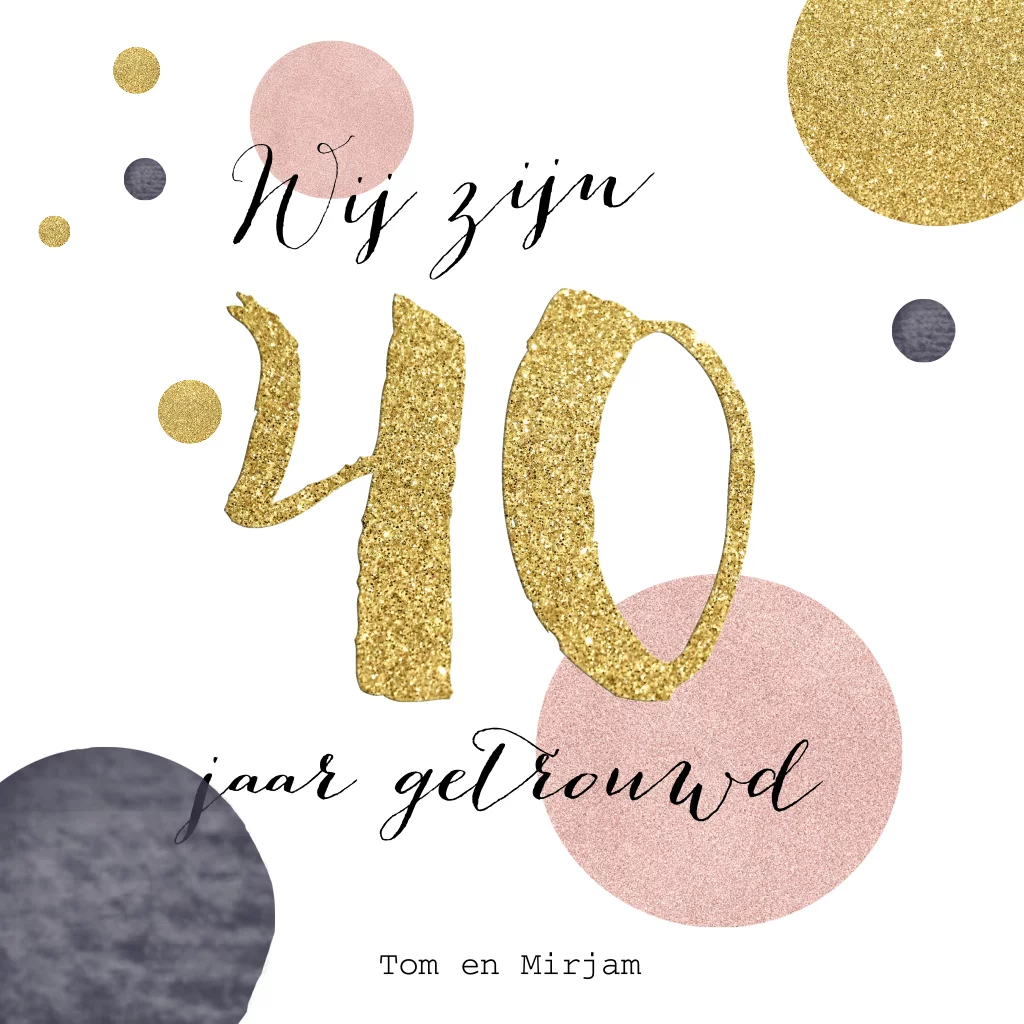 Hippe uitnodiging 40 jaar getrouwd goud roze en paars
