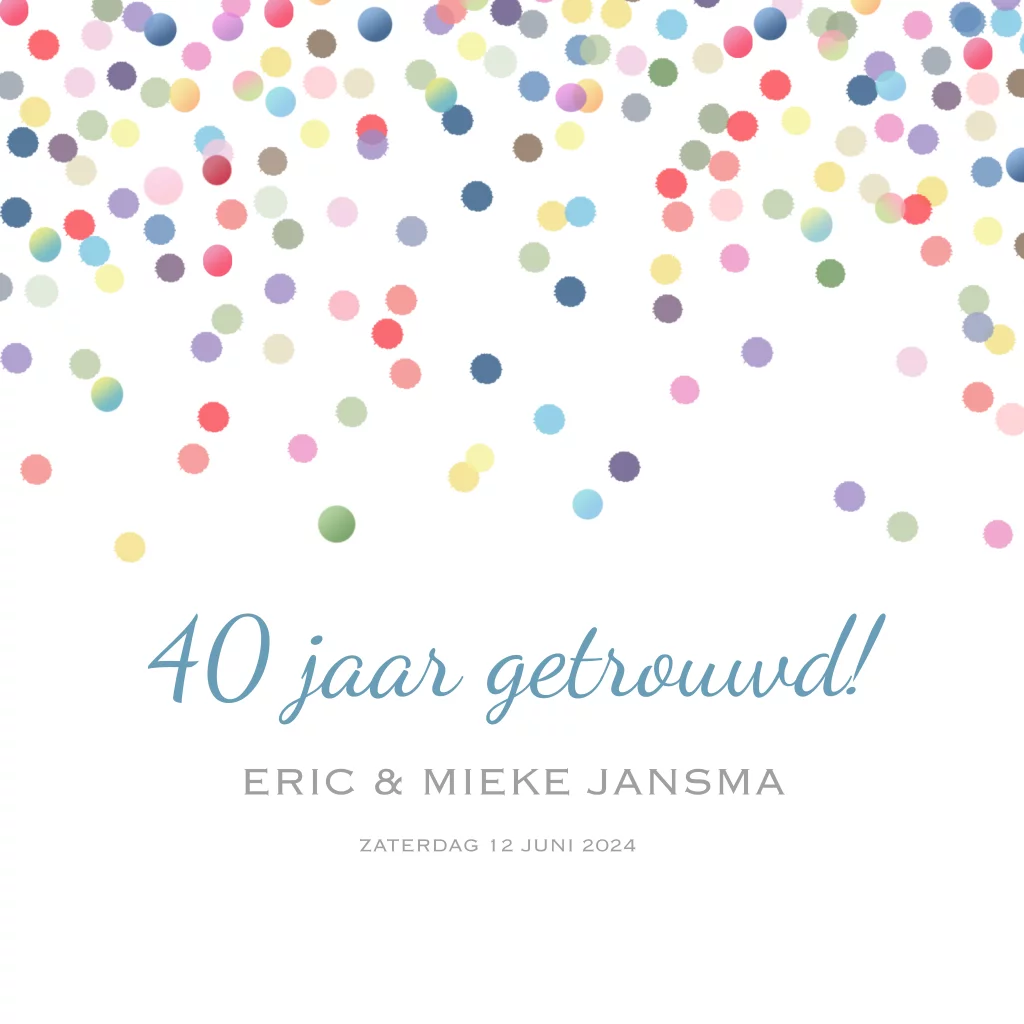 Feestelijke uitnodiging jubileum 40 jaar getrouwd met confetti