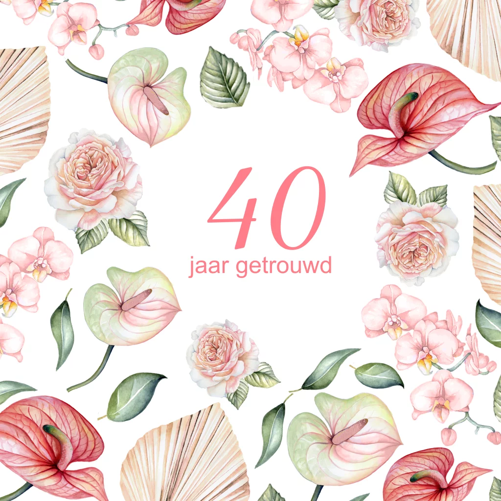 Huwelijksjubileum uitnodiging 40 met bloemen in pastel