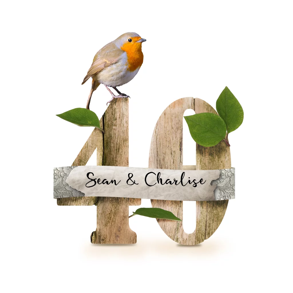 Uitnodiging feest 40 jaar getrouwd met hout roodborstje