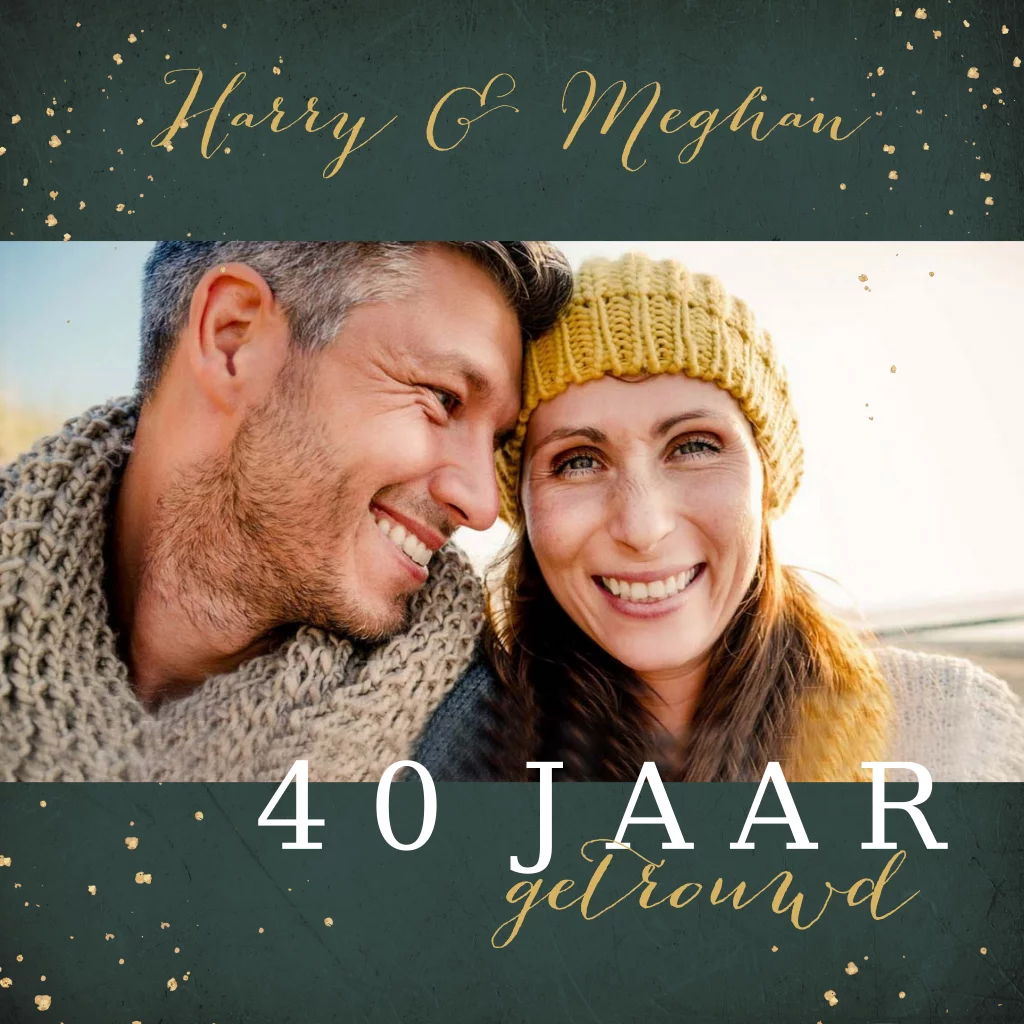 Maak deze 40 jaar getrouwd jubileumkaart voor jullie huwelijksjubileum. Met fraaie gouden confetti en combineer het goud mooi met de groene achtergrond. (20292)