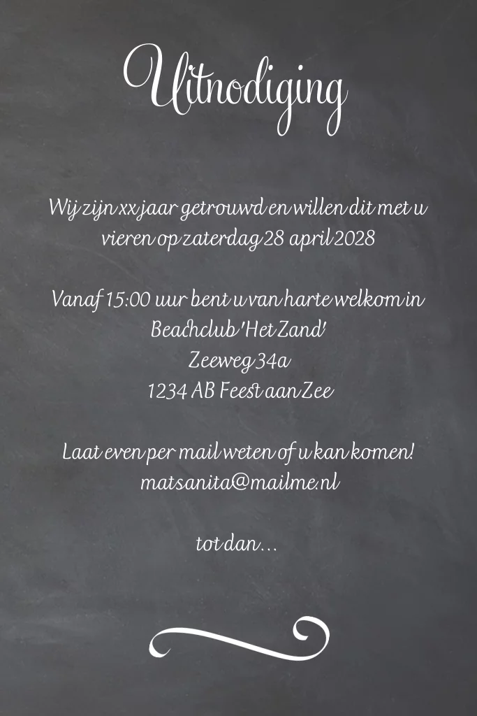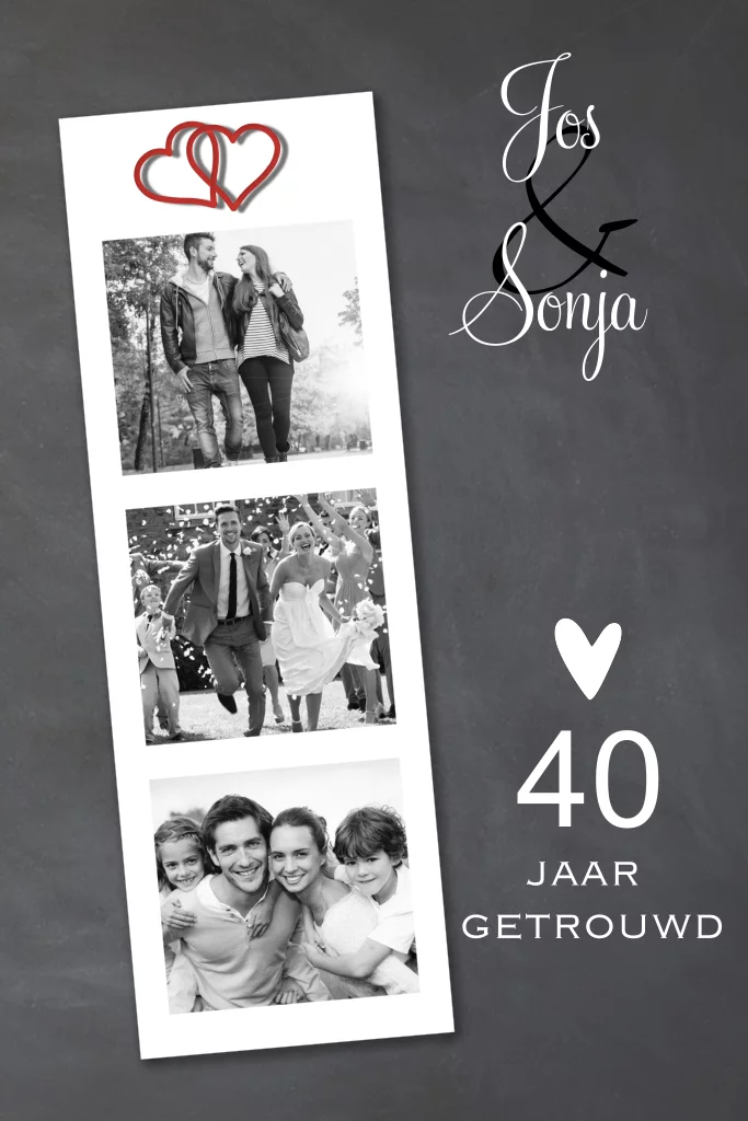 Helemaal trendy! Een 40 jaar getrouwd uitnodiging met fotostrip op een ondergrond van krijtbord. (3290)