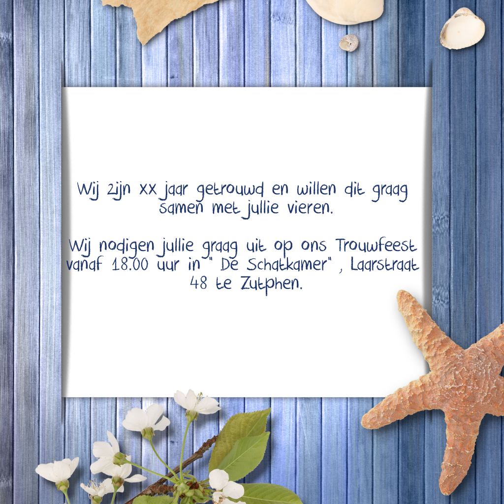 Jubileum 40 uitnodiging met schelpen en ruimte eigen foto