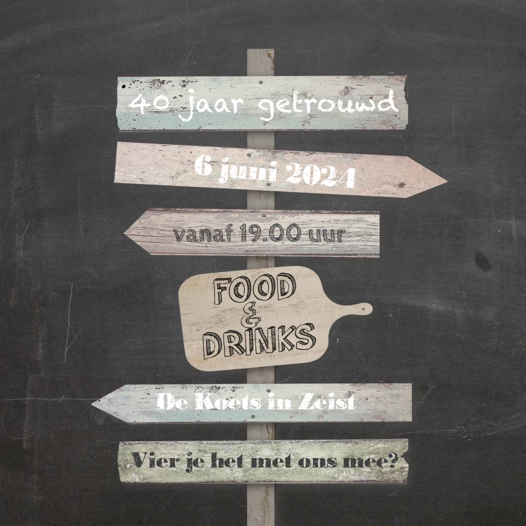 Uitnodiging 40 jaar getrouwd feest krijtbord houten borden vierkant