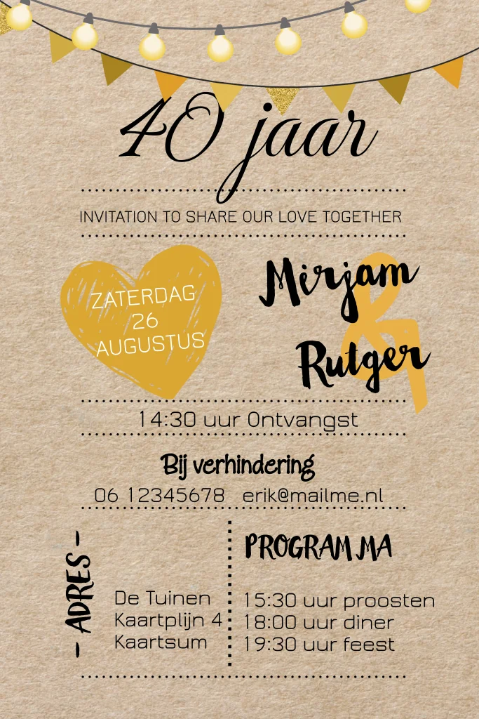 Uitnodiging 40 jaar getrouwd kaarten maken - MyCards.nl