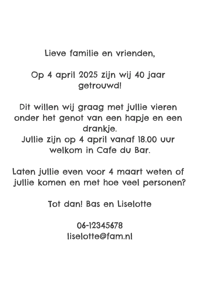 Uitnodiging 40 jaar getrouwd kaarten maken - MyCards.nl