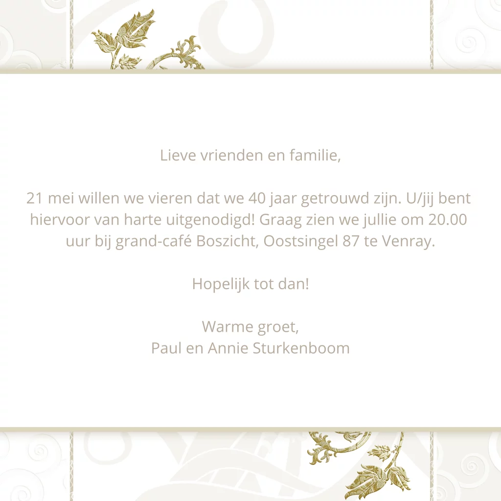 Uitnodiging 40 jaar getrouwd kaarten maken - MyCards.nl