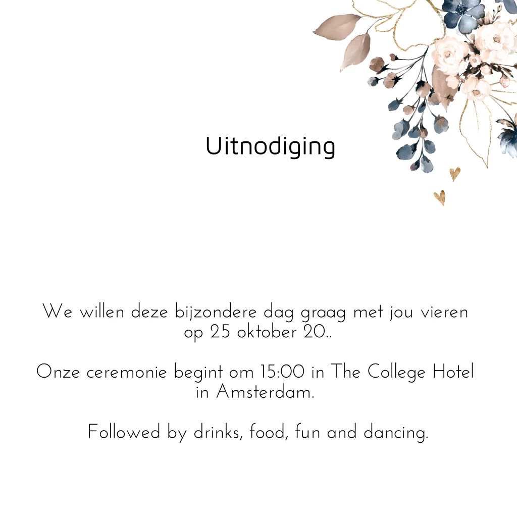 Jubileum uitnodiging 45 jaar getrouwd met bloemen blauw en goud-look. (8143)