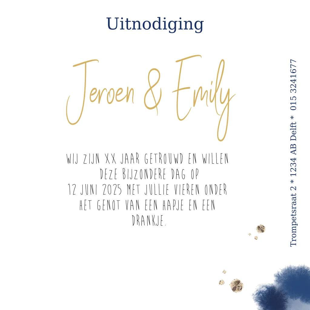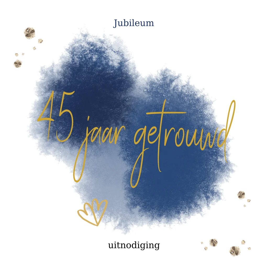 Jubileum uitnodiging 45 jaar getrouwd met aquarel blauw en spetters. (8256)