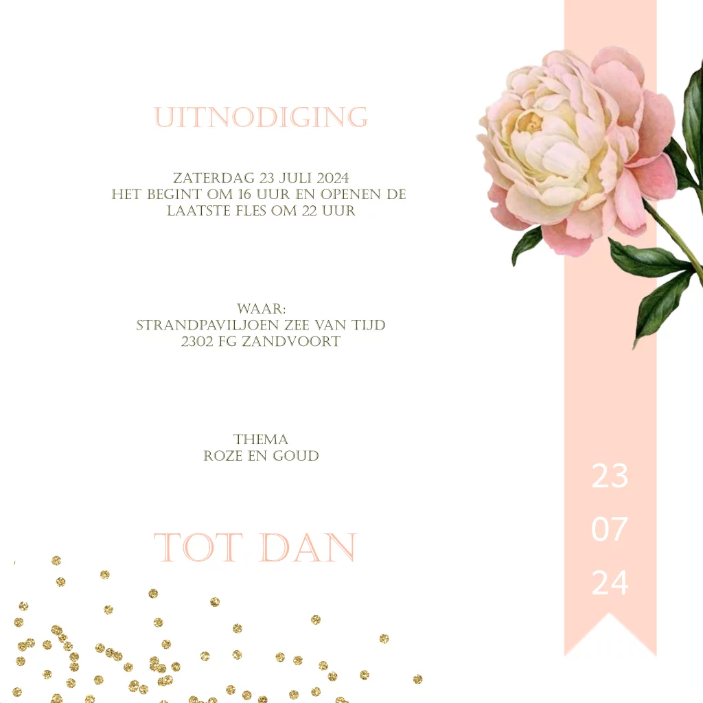 Uitnodiging jubileum 45 jaar met glazen en bloemen