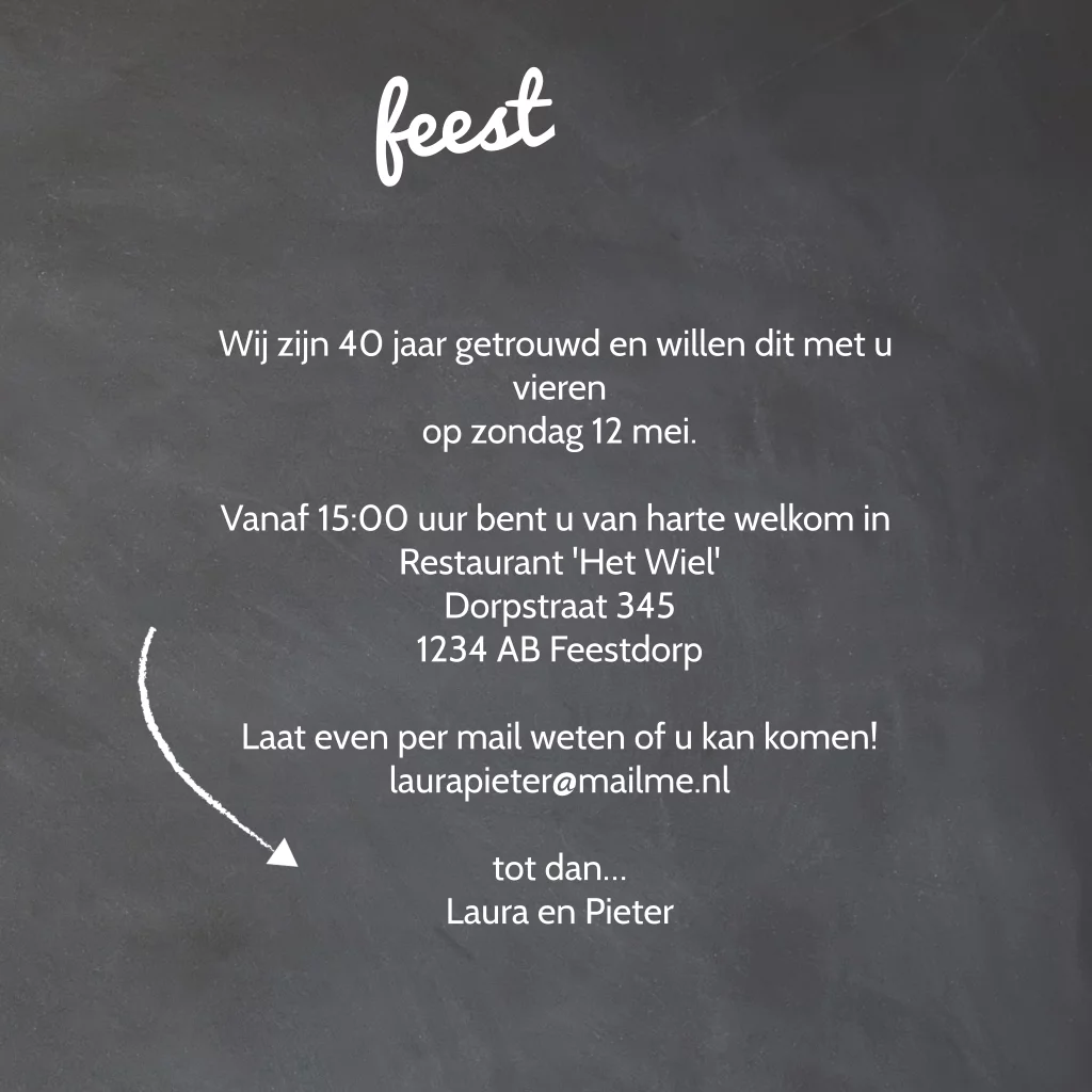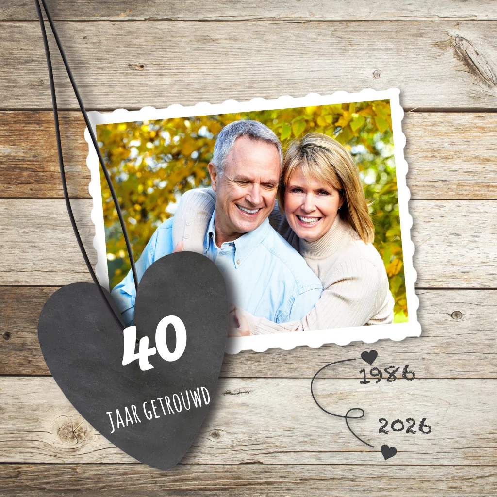 Foto jubileumkaart 40 jaar getrouwd met hanger hout schoolbord. (1733)