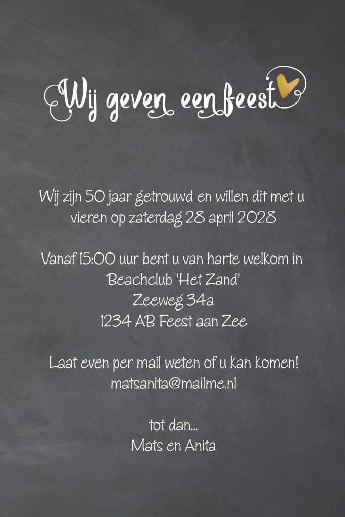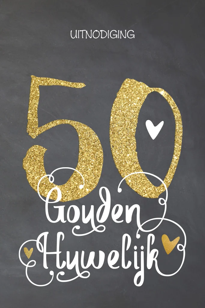 Jubileum uitnodiging 50 jaar getrouwd op krijtbord met goud