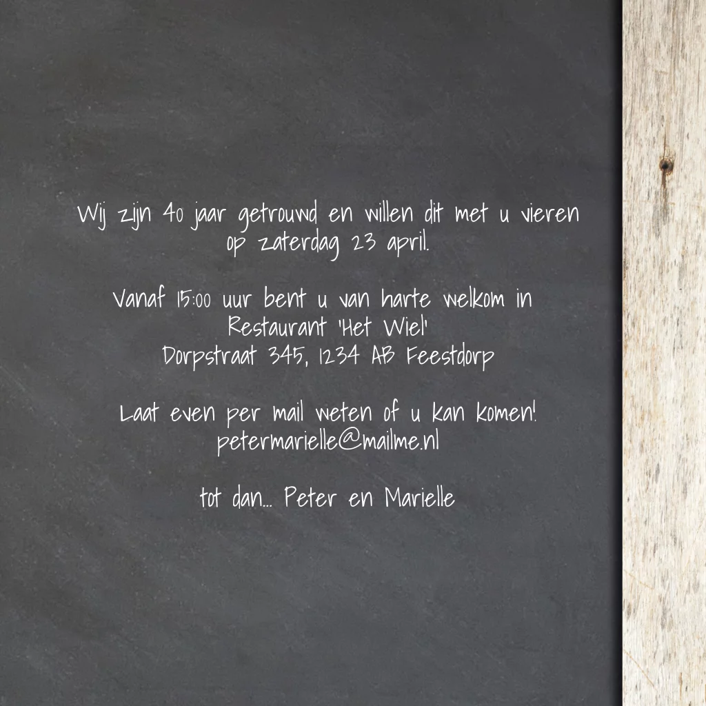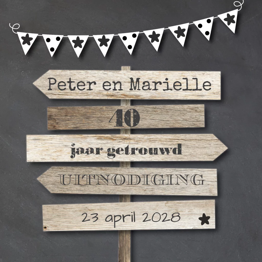 Jubileumkaart 10 jaar getrouwd krijtbord slingers wegwijs hout. (1729)