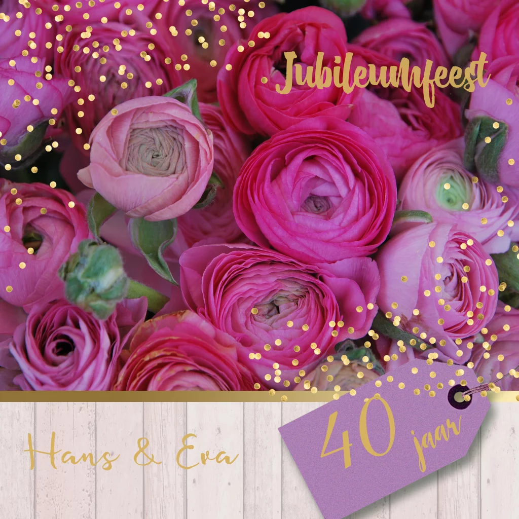 Uitnodiging 40 jaar getrouwd met prachtige bloemen en goud