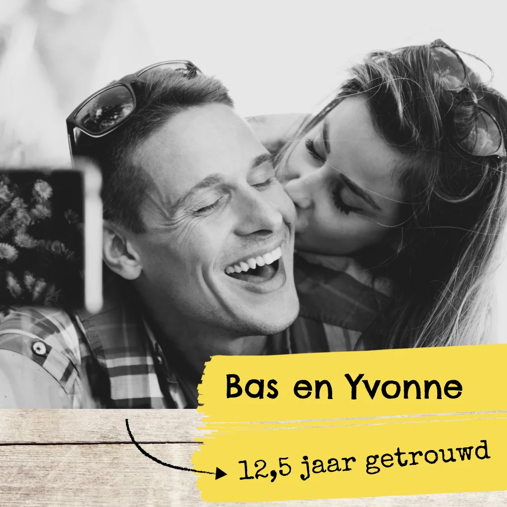 Uitnodiging 12,5 jaar getrouwd verf met steigerhout en foto