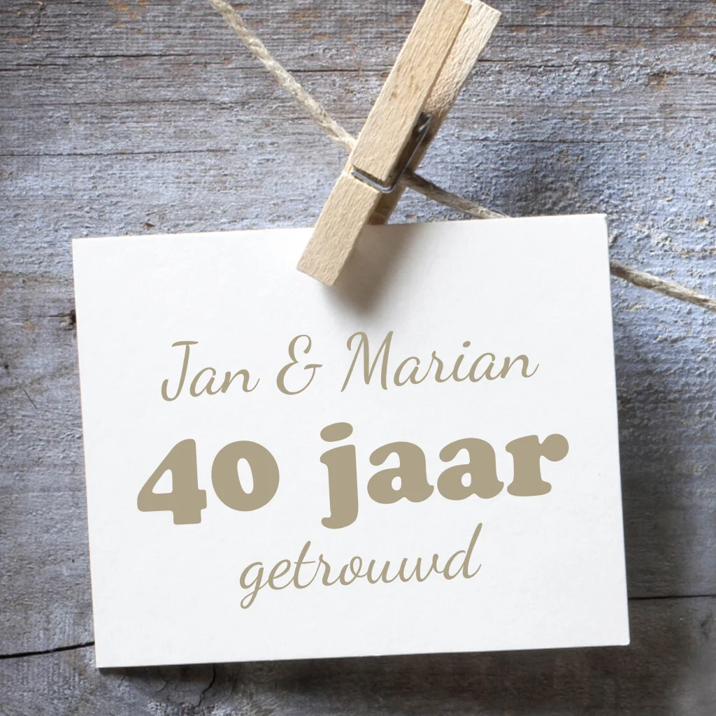Uitnodiging huwelijksjubileum wasknijper en hout