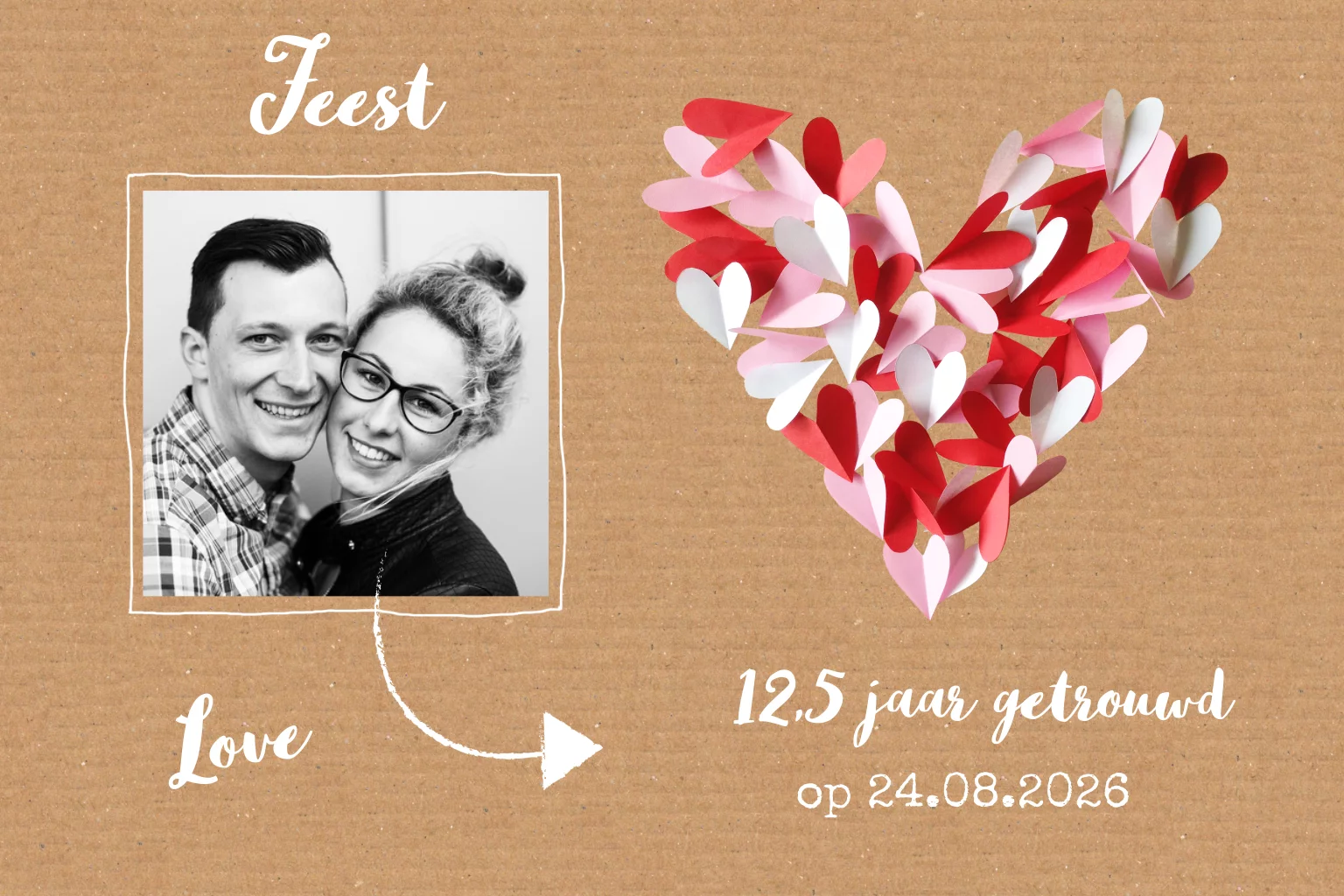 Jubileum uitnodiging met kartonnen achtergrond 12,5 jaar getrouwd (3700)