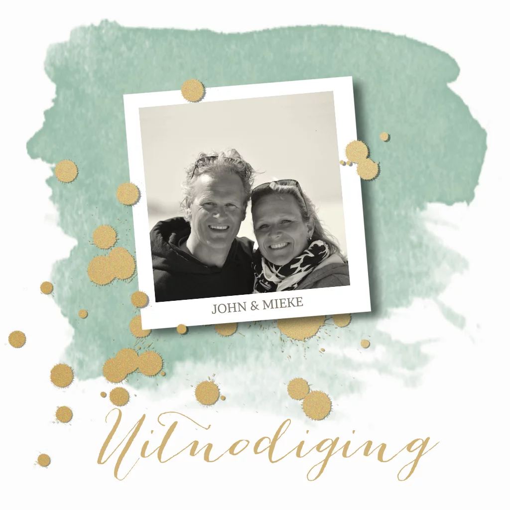 Uitnodiging 20 jaar getrouwd uitnodiging met foto waterverf met confetti. (7358)