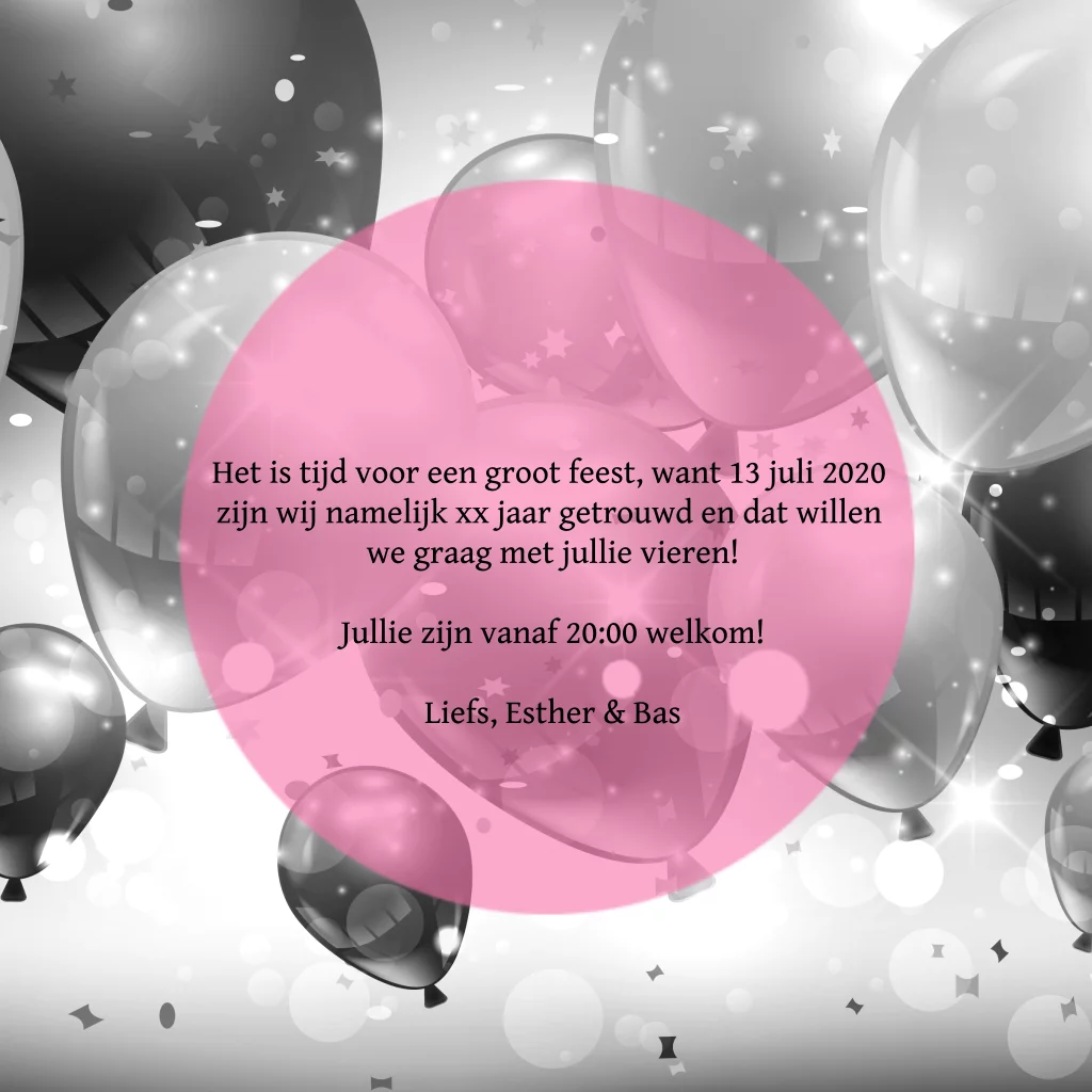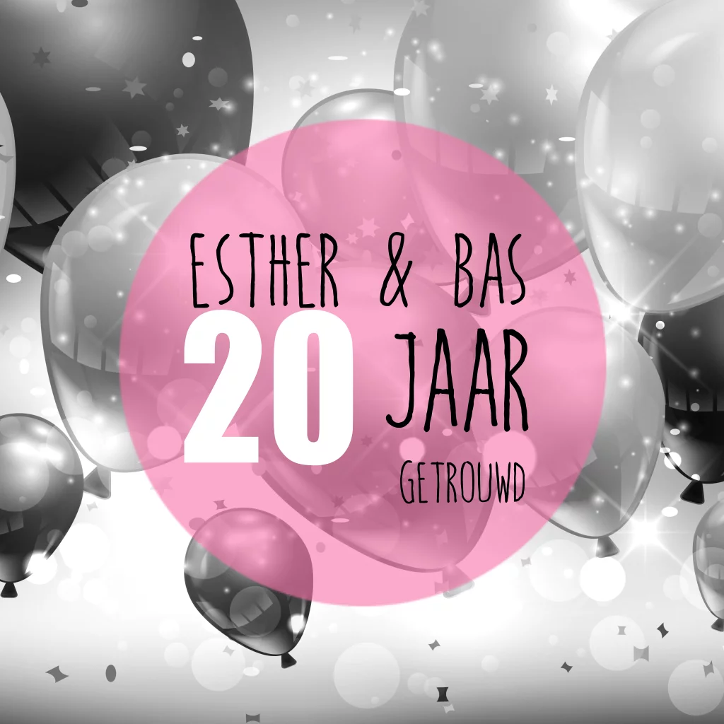 20 jaar getrouwd uitnodiging voor jullie jubileum. Met mooie zwart wit ballonnen. (7145)